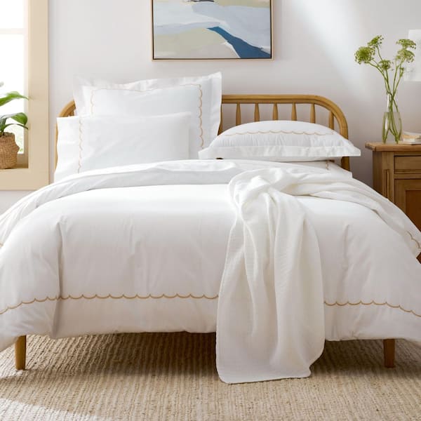 Company Cotton Scallop Tan Cotton Percale King Pillowcase (Set of 2)