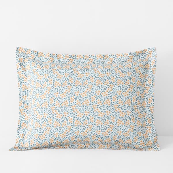 Company Cotton Serene Floral White Multi Cotton Percale Standard Sham