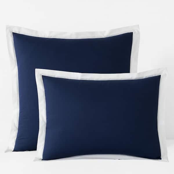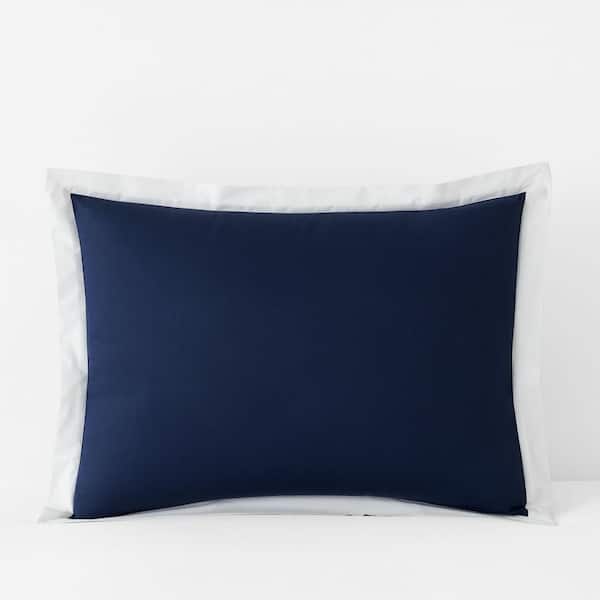 Company Cotton Solid Border Trim Navy Cotton King Sham