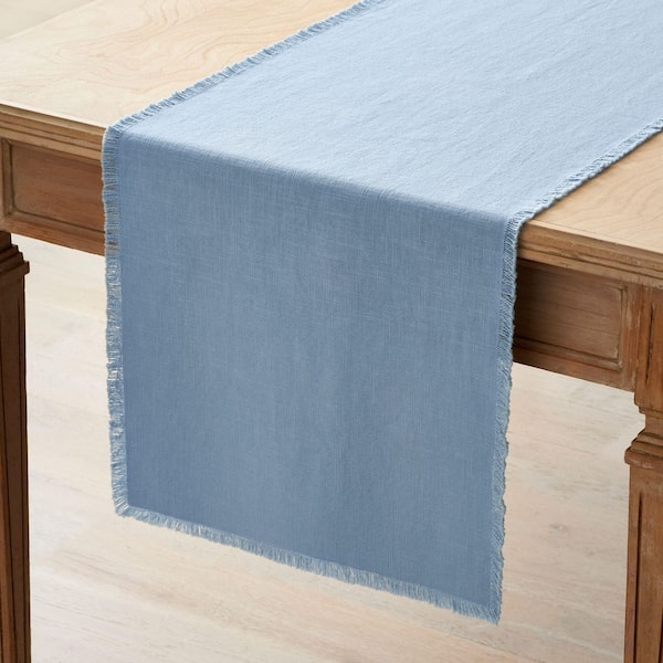Company Cotton Solid Fringe 16 in. W x 108 in. L Pale Blue Solid Table Runner