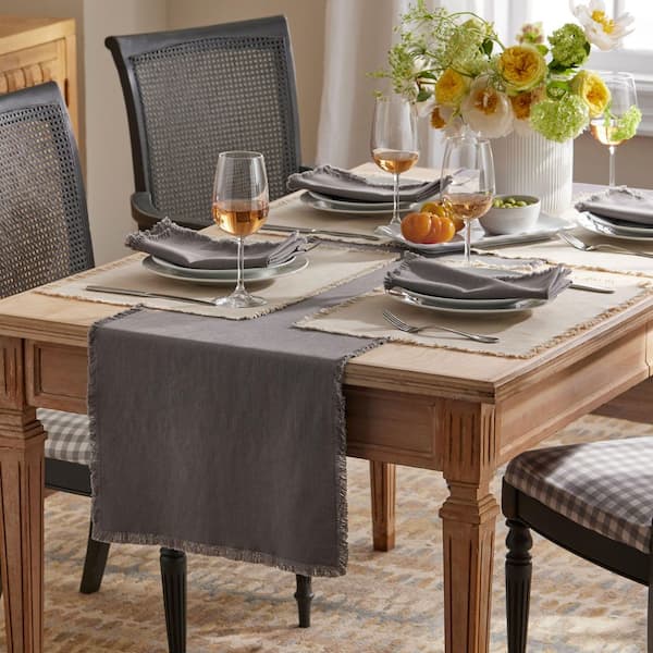 Company Cotton Solid Fringe 16 in. W x 108 in. L Stone Solid Table Runner