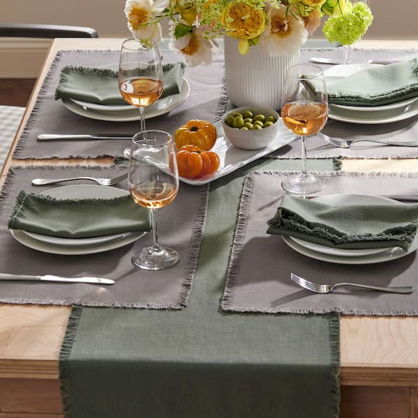Company Cotton Solid Fringe 20 in. x 14 in. Stone Placemat (Set of 4)