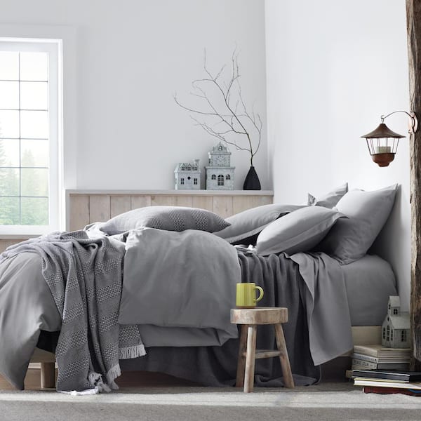 Company Cotton Solid Velvet Flannel Slate Gray King Duvet Cover
