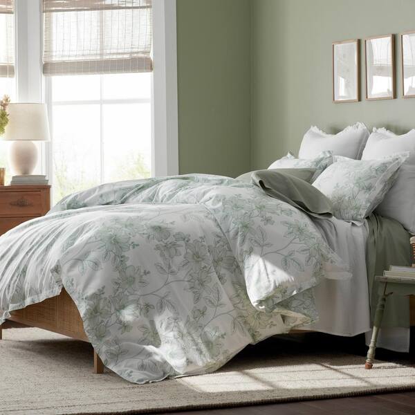 Company Cotton Spring Vine Light Sage Full/Queen Sateen Duvet Cover