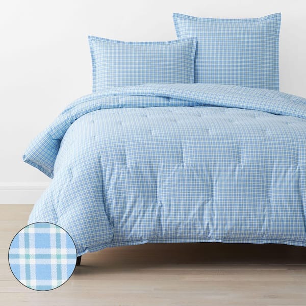 Company Cotton Sunshine & Blooms Blue/Green Plaid King/California King Cotton Percale Comforter