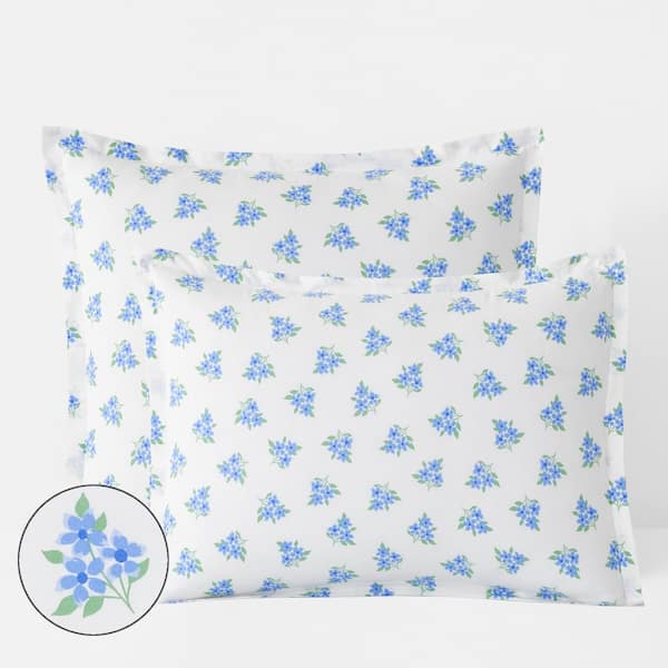Company Cotton Sunshine & Blooms Blue Multi Floral Cotton Percale Standard Sham