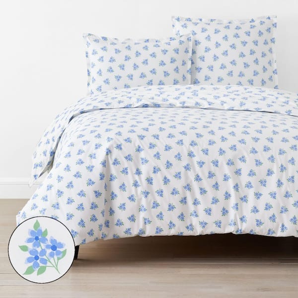 Company Cotton Sunshine & Blooms Blue Multi Floral King Cotton Percale Duvet Cover
