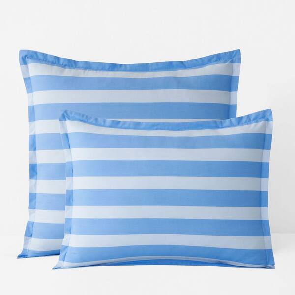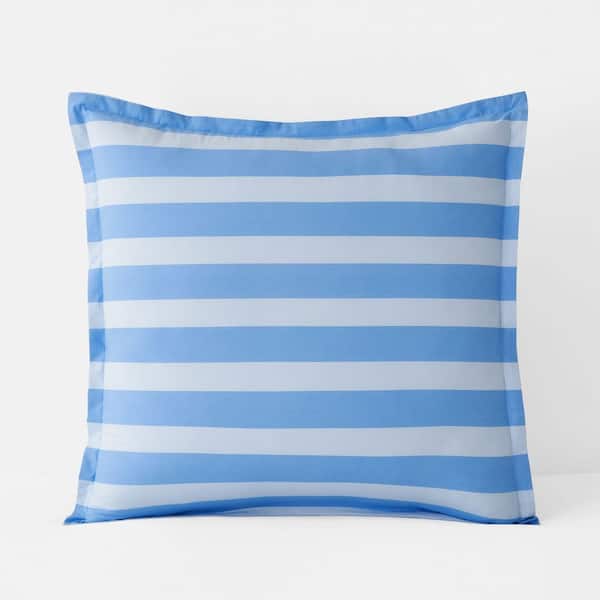 Company Cotton Sunshine & Blooms Blue Multi Stripe Cotton Percale Euro Sham