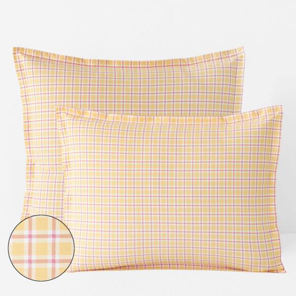 Company Cotton Sunshine & Blooms Coral/Orange Plaid Cotton Percale King Sham
