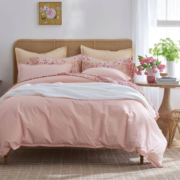 Company Cotton Sunshine & Blooms Coral Pinstripe Cotton Percale Full Sheet Set
