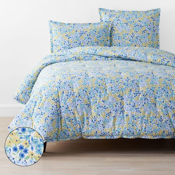Company Cotton Sunshine & Blooms Multi Blue/White Mini Floral King/California King Cotton Percale Comforter