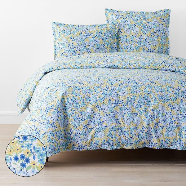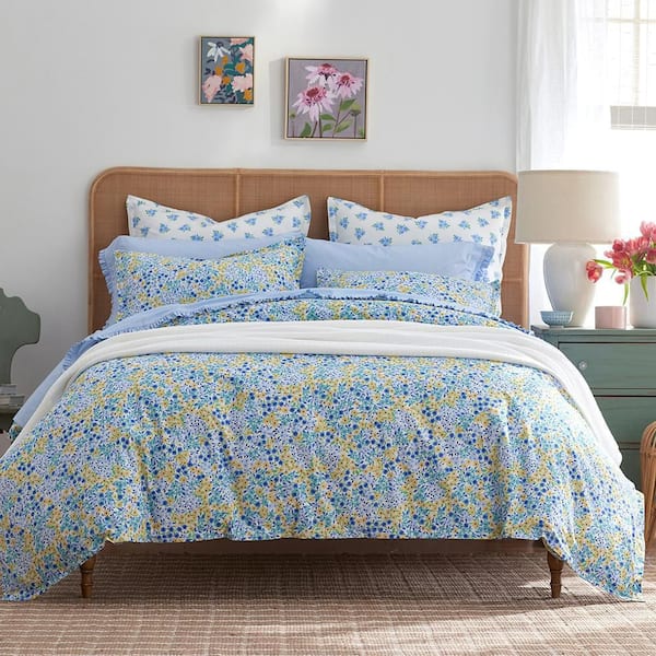 Company Cotton Sunshine & Blooms Multi Blue/White Mini Floral King Cotton Percale Duvet Cover