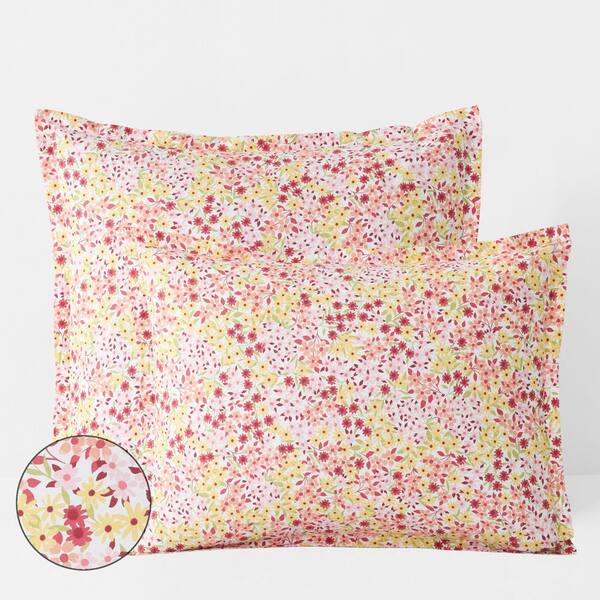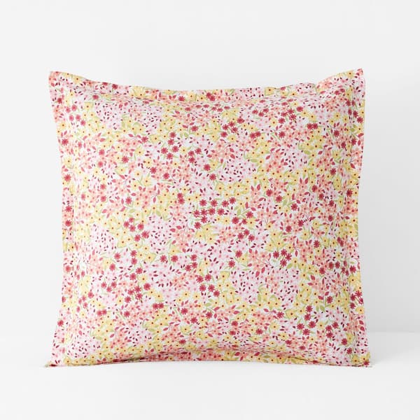 Company Cotton Sunshine & Blooms White Multi Mini Floral Cotton Percale Euro Sham