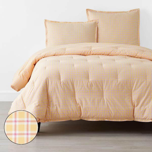 Company Cotton Sunshine and Blooms Coral/Orange Plaid Full/Queen Cotton Percale Comforter