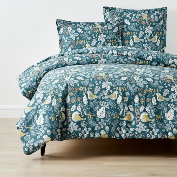 Company Cotton Swallow Leaf Slate Full Cotton Percale Duvet Cover