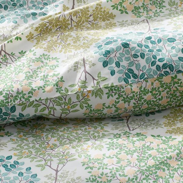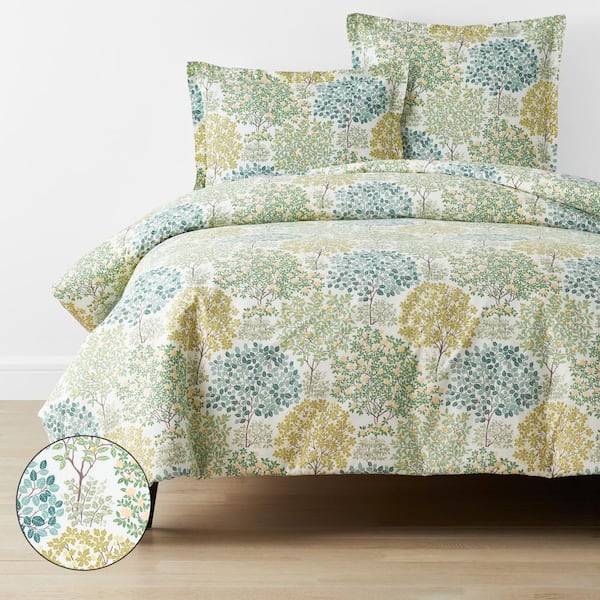 Company Cotton Trees in Bloom Green Multi Floral Full Cotton Percale Duvet Cover