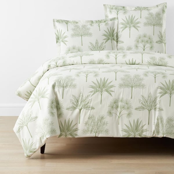 Company Cotton Tulum Forest Moss Green Botanical Full Cotton Percale Duvet Cover