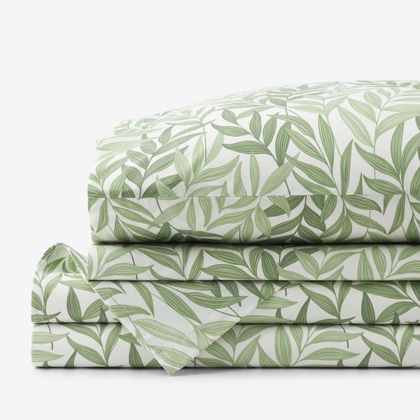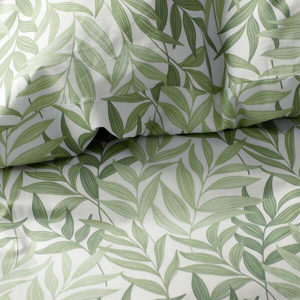Company Cotton Tulum Leaf Moss Green Floral Cotton Percale King Sheet Set