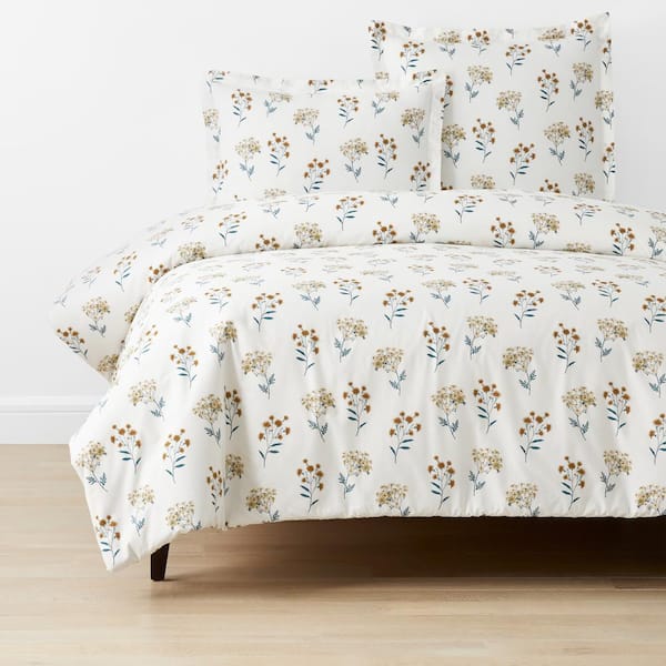Company Cotton White Multi Stem Bouquet Twin Cotton Percale Duvet Cover