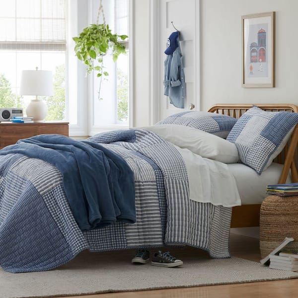 Company Kids Blue Company Kids Yarn Dye Stripe Block Cotton Standard Sham