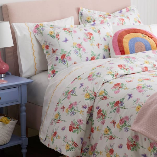 Company Kids Butterflies And Flowers Multi-Colored Organic Cotton Percale Twin Sheet Set