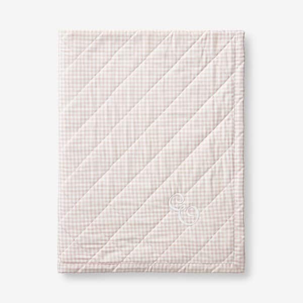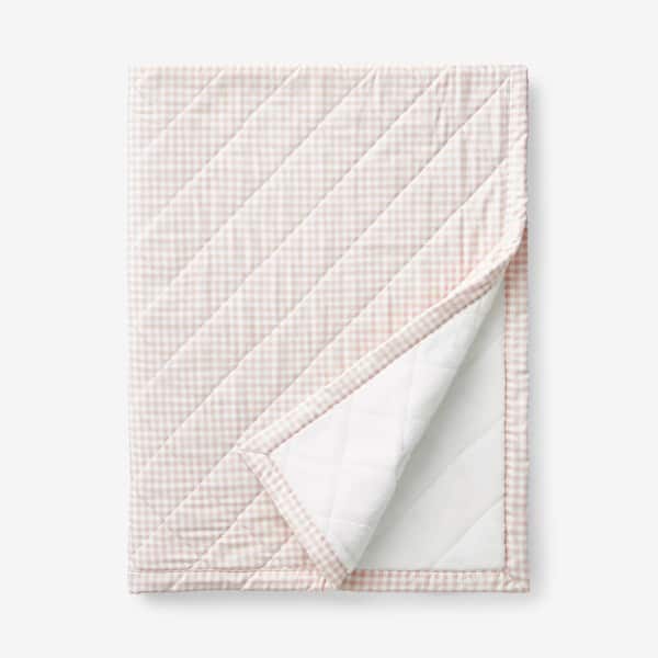 Company Kids Ditsy Gingham Quilted/Sherpa Pink Organic Cotton Percale Stroller Blanket