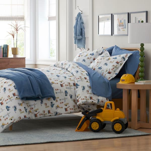 Company Kids White Multi City Builders Organic Cotton Percale Twin/Twin XL Duvet Cover Set