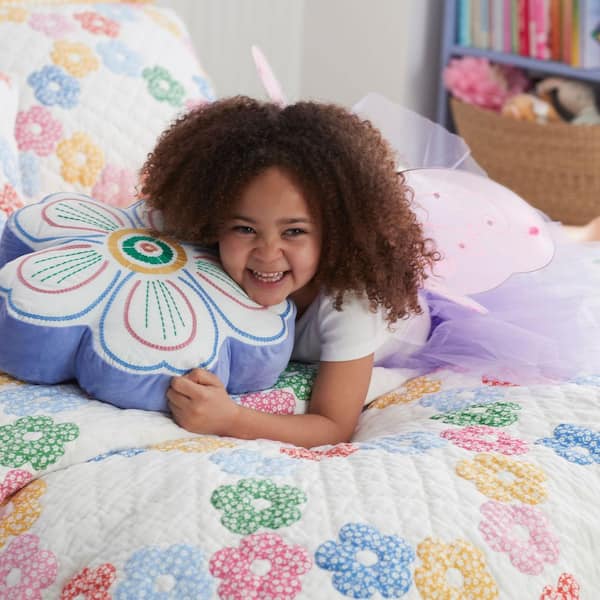 Company Kids White Multi Flower 80 in. x 78 in. Throw Pillow