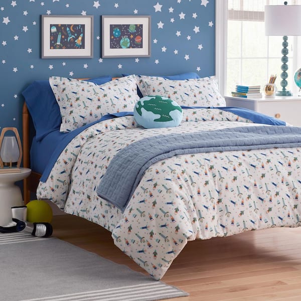 Company Kids White Multi Space Adventure Organic Cotton Percale Twin/Twin XL Comforter Set