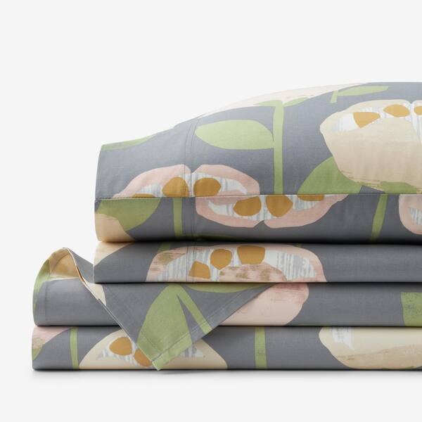 Company Organic Cotton Blush Floral Gray Multi Cotton Percale Queen Sheet Set
