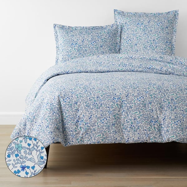 Company Organic Cotton Claire Blue Multi Twin Cotton Percale Duvet Cover
