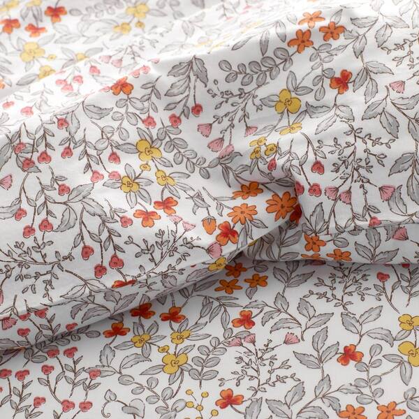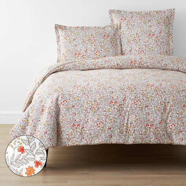 Company Organic Cotton Claire Orange Multi Twin Cotton Percale Duvet Cover