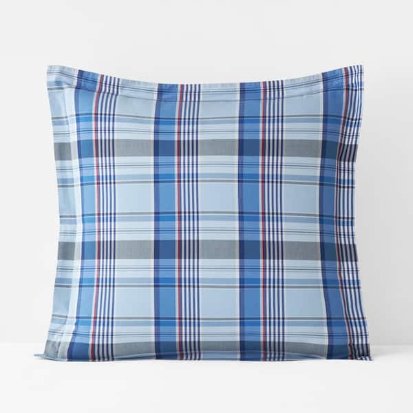 Company Organic Cotton Grayson Plaid Yarn-Dyed Blue Multi Cotton Percale Euro Sham
