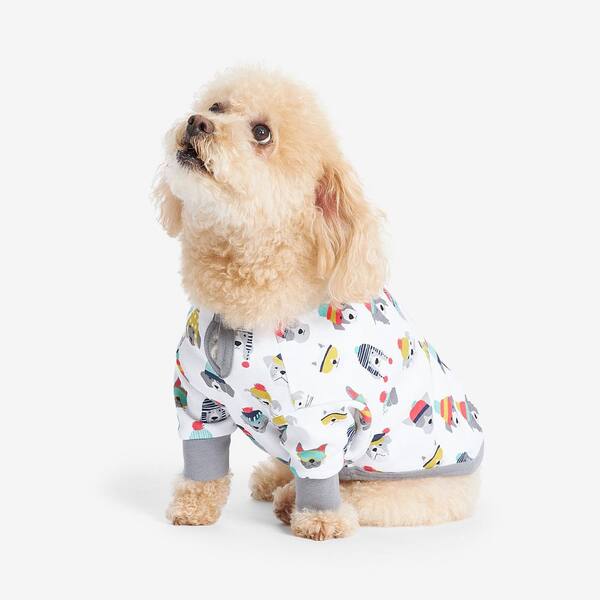 • One-piece slip-on dog pajamas with Velcro closure