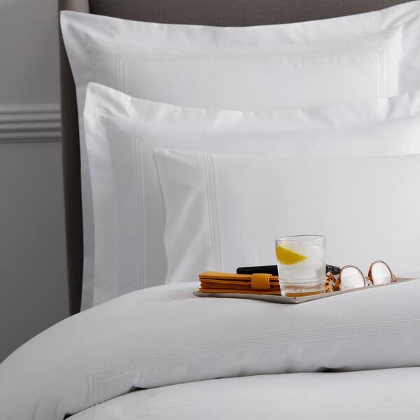 Dorset Stripe Legends Hotel White Embroidered 600-Thread Count Egyptian Cotton Sateen Euro Sham