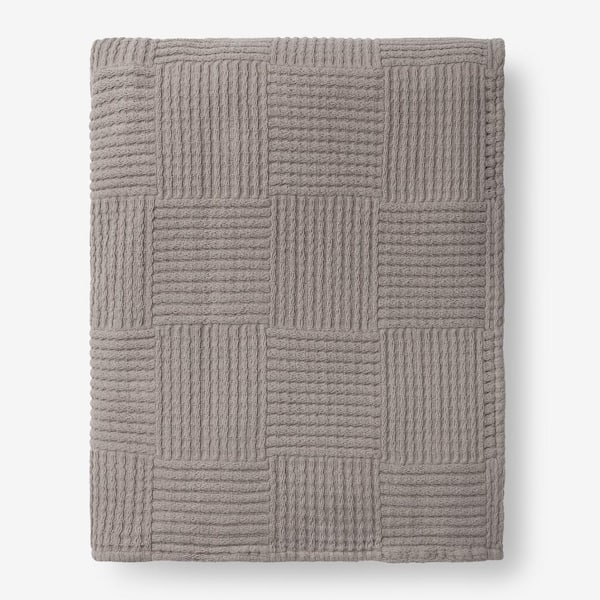 Large Basketweave Shale Cotton Queen Blanket