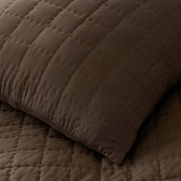 Legends Hotel Box Stitch Quilted Brown Geometric Cotton King Sham