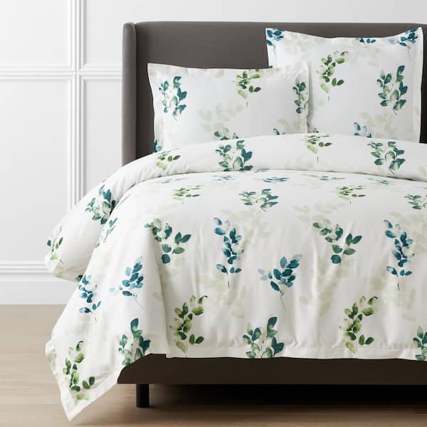 Legends Hotel Deco Leaf White Multi King Sateen Duvet Cover