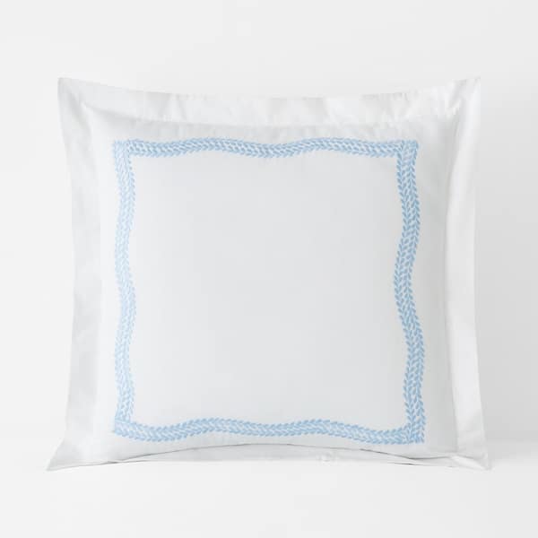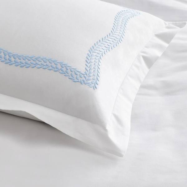Legends Hotel Embroidered Leaf White/Blue Floral Egyptian Cotton Euro Sham