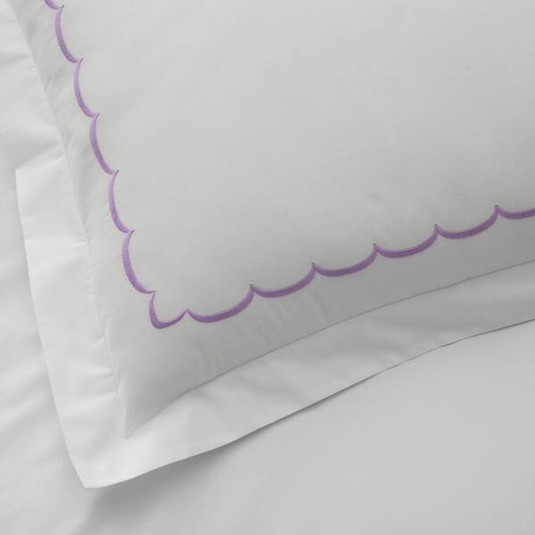 Legends Hotel Embroidered Scallop Lavender Geometric Full Cotton Percale Duvet Cover