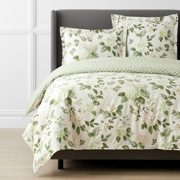 Legends Hotel Green Multi Blooming Flowers Full Wrinkle-Free Sateen Duvet Cover