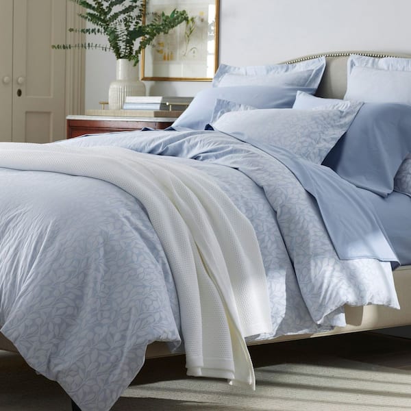 Legends Hotel Jacquard Leaf Blue Shadow Wrinkle-Free Supima Cotton King Duvet Cover
