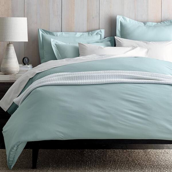 Legends Hotel Organic Pale Blue Solid 300-Thread Count Cotton Percale Single Euro Sham