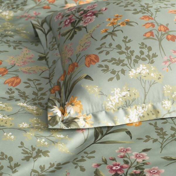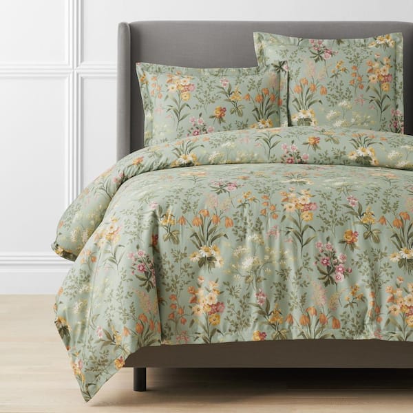Legends Hotel Sage Green Blooming Elegance Twin Wrinkle-Free Sateen Duvet Cover