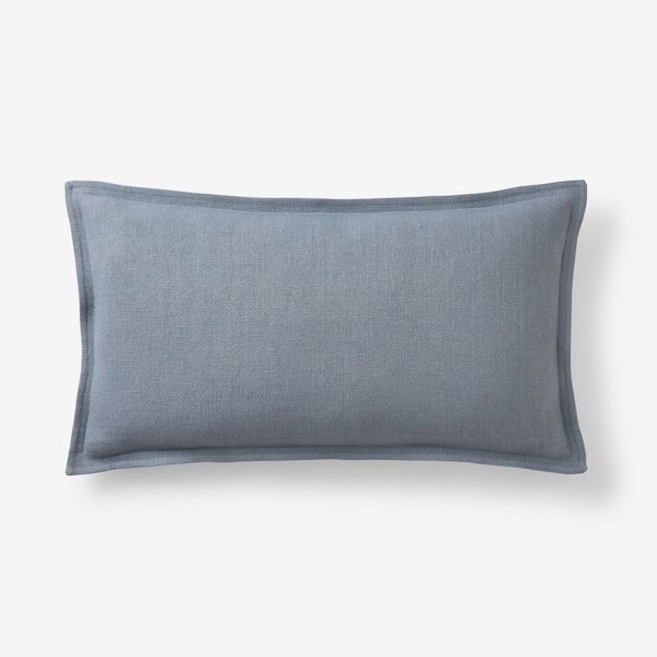 Legends Hotel Slate Blue Linen 12 in. X 21 in. Throw Pillow Cover