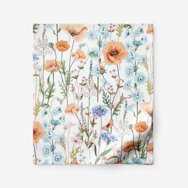 Legends Hotel Summer Floral Wrinkle-Free White Multi Sateen King/Cal King Flat Sheet