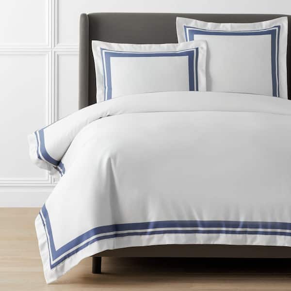 Legends Hotel Supima Double Border Blue Dusk Full Wrinkle-Free Sateen Duvet Cover