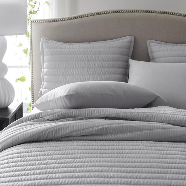 Legends Hotel Wrinkle-Free Light Gray Striped Full Cotton Sateen Coverlet