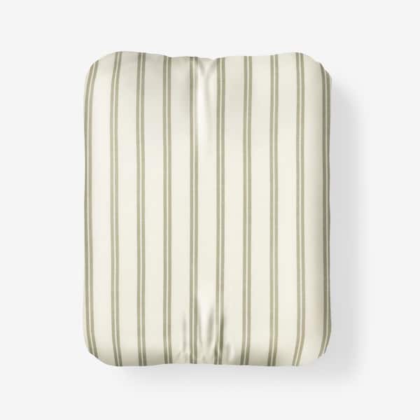 Narrow Stripe T200 Yarn Dyed Moss Green Cotton Percale Twin Fitted Sheet