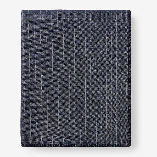 Pinstripe Navy Wool King Blanket